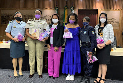 A secretária da Semdes, Sheila Freitas, enfatizou a participação das coordenadoras da Patrulha Maria da Penha no Município e no Estado, a guarda municipal Michele Oliveira e a major PM Soraya Castelo Branco; e da convidada de honra, major PM Denice Santiago, que comanda a Ronda Maria da Penha na Bahia. “Recebemos mulheres que atuam diariamente na defesa e proteção das mulheres e é muito importante esse acolhimento da Câmara. Hoje temos em Natal a Patrulha com três equipes atendendo 52 mulheres. Em um ano foram mais de 10 prisões em flagrante e nenhum feminicídio na cidade”, destacou Sheila Freitas.