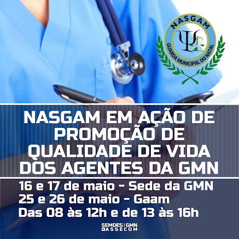 A Supervisora Fátima Miranda, Presidente do Nasgam, explicou que entre os procedimentos a serem realizados, teremos: verificação da pressão arterial, teste de glicemia, orientações psicológicas, nutricionais e de fisioterapias, informações e/ou orientações pertinentes a cada situação apresentada pelo GM, bem como, informações das técnicas terapêuticas utilizadas pelo Nasgam: Barras de Acess, Auriculoterapia, Técnica com laser ILIB, dentre outras, e ainda a aplicação de questionário biopsicossocial para coletar dados referentes ao estado de saúde física e mental do Agente.